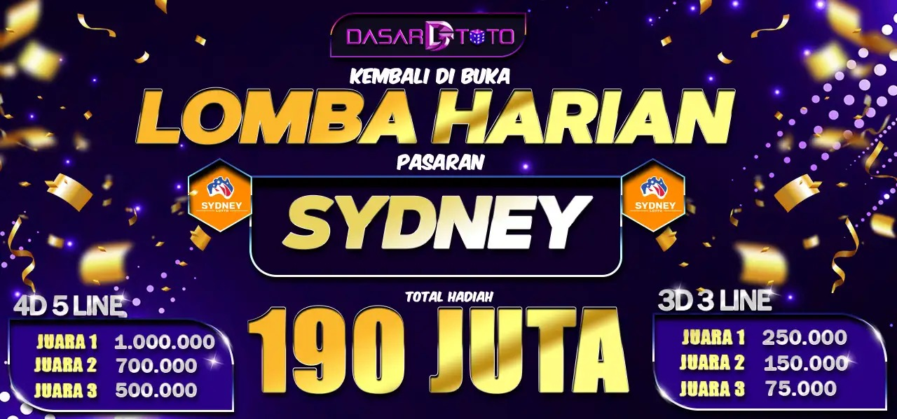 Salah satu jenis pasaran lomba yang kalian bisa ikuti adalah lomba harian sydney. Kita semua tahu bahwa pasaran yang satu ini memiliki banyak peminat dan juga banyak pemain di seluruh dunia. Maka dari itu situs dasartoto menjadikan pasaran yang satu ini sebagai salah satu pasaran yang di lombakan. Hadiah yang di tawarkan kepada pemain yang berhasil menebak angka dengan benar adalah sebesar 190 juta rupiah. Buruan ikuti.